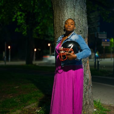 "Guerrières" est un projet qui vise à donner une place et une visibilité aux femmes dans l'espace public, en particulier la nuit. À travers des portraits, ce projet met en lumière la force et la détermination des femmes dans un espace pensé par et pour les hommes avec toutes les contraintes que cela implique en terme de sécurité, de confort et d’accessibilité.