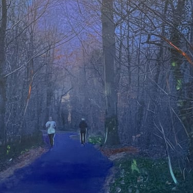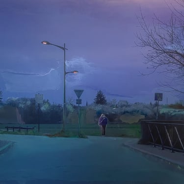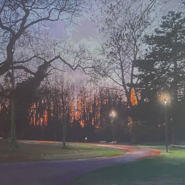 Ce projet est initié avec Audren Brisset, artiste peintre, en collaboration avec le SINE de Bussières, 2025. Il est le fruit d’une résidence au CINE de Bussières de janvier à mars 2025. Le sujet se développe autour de la présence des femmes dans le parc de la Robertsau à la tombée de la nuit. Quelles sont leurs activités, leur état d’esprit et leurs motivations ? Les photos sont peintes à l’huile leur donnant une représentation onirique.